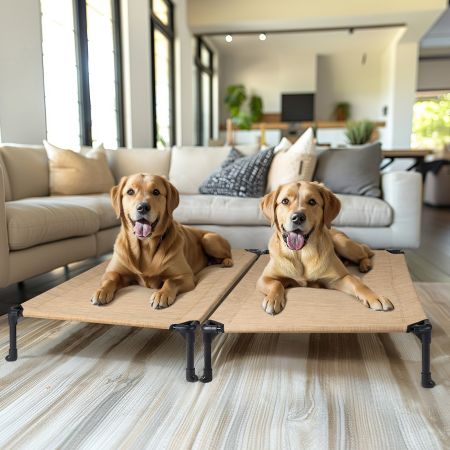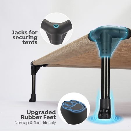Elevate your pets’ comfort with the veehoo 2 pack elevated dog bed! This bed boasts a high load-bearing frame for stability and a durable teslin mesh surface for airflow and cooling comfort. With non-slip rubber feet, it stays put while protecting your floors. The strong tube frame reinforces the bed's structure, ensuring it lasts. The raised design enhances airflow, keeping your pets’ sleeping area fresh. Treat your pets to a dual dose of comfort and durability with this bed set.