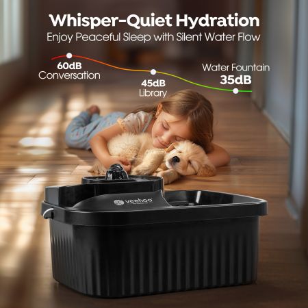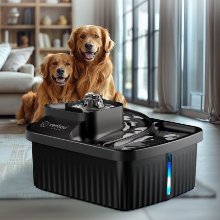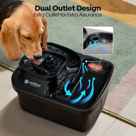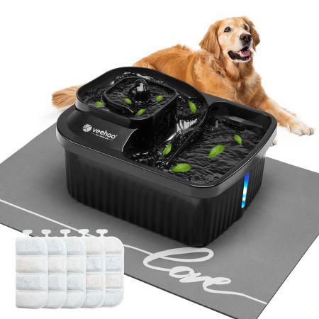 The veehoo 9L stainless steel dog water fountain offers a bountiful source of fresh water for your furry friends. With a 9-liter capacity, dual water outlets, and an LED indicator, it ensures a continuous supply of clean water. The stainless steel construction and detachable design make it durable and easy to clean. Protect your floors from messes with the included diatomite mat. Provide your dogs with the hydration they need with the veehoo dog water fountain.