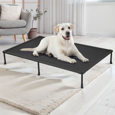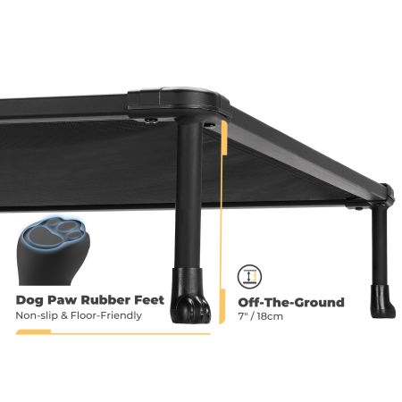 The veehoo chew-proof dog bed features a durable metal frame, textilene mesh fabric, and non-slip rubber feet, making it indestructible and perfect for dogs that love to chew. The raised design keeps your dog off cold floors, promoting comfort and health. The bed's tight mesh repels pet hair and dirt, making cleaning a breeze. Assembly is easy with included screws and tools, making it perfect for on-the-go quality sleep!
