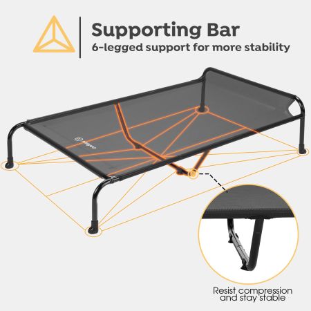 Customize your pets’ sleeping experience with the veehoo elevated dog bed with slope headrest. This elevated bed is designed with an angled headrest for added comfort and support, and features durable double-stranded teslin mesh for increased breathability. The easy-clean feature and raised design make it perfect for maintaining a sanitary and comfortable sleeping space. The in-flow support bar design ensures the bed's stability, providing your furry friends with a safe and comfortable resting place!