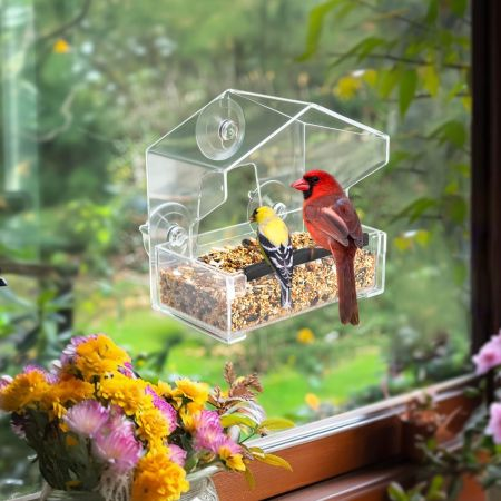 • Ensure your backyard birds are well-fed with the Veehoo Metal Bird Feeder for Outdoor. This feeder features a sturdy metal hook, durable metal lid, and clear chamber for easy monitoring of seed levels. It comes with four metal perches, allowing multiple birds to feed simultaneously. The oversized lid design ensures that the feeder is squirrel-proof and bird-friendly.