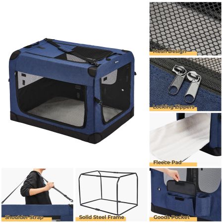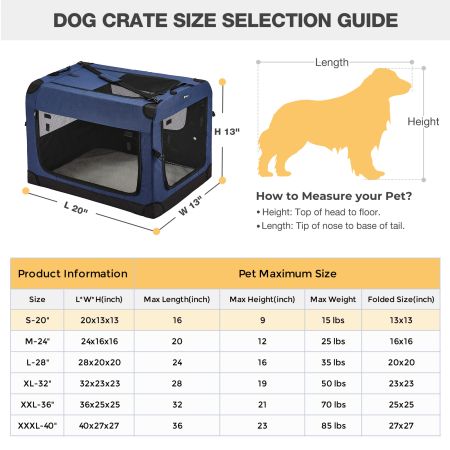 Size Dimensions Weight Suggested Pet Weight M 24''L×16''W×16''H 6.20lbs up to 25lbs L 28''L×20''W×20''H 7.90lbs up to 35lbs XXL 36''L×25''W×25''H 10.50lbs up to 70lbs 3XL 40''L×27''W×27''H 11.70lbs up to 85lbs Item Number CWB1901CP Weight 1.00lbs Species Cats, Dogs Product Feature Collapsible, Durable, Portable General Material Solid Steel Cover Material Oxford Fabric Fill Material N/A Lifestage All Lifestages Assembly Required Yes Tools Included N/A