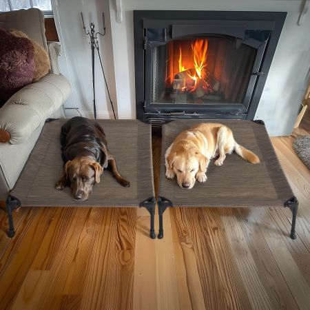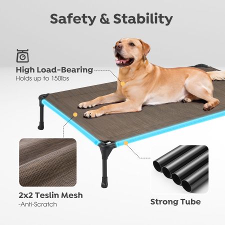 Elevate your pets’ comfort with the veehoo 2 pack elevated dog bed! This bed boasts a high load-bearing frame for stability and a durable teslin mesh surface for airflow and cooling comfort. With non-slip rubber feet, it stays put while protecting your floors. The strong tube frame reinforces the bed's structure, ensuring it lasts. The raised design enhances airflow, keeping your pets’ sleeping area fresh. Treat your pets to a dual dose of comfort and durability with this bed set.
