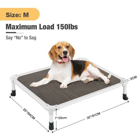 Size Dimensions Weight Suggested Pet Weight M 32''L×25''W×7''H 4.50lbs up to 150lbs L 42''L×30''W×7''H 5.90lbs up to 150lbs XL 49''L×32.5''W×9''H 6.70lbs up to 150lbs XXL 59''L×37.4''W×9''H 8.40lbs up to 250lbs Item Number CWC2003CP Weight 1.00lbs Species Dogs Bed Shape Rectangular Product Feature Breathable, Cooling, Durable, No-Slip General Material Aluminum, Plastic Bed Type Sales Cover Material Teslin Fabric Fill Material N/A Lifestage All Lifestages Assembly Required Yes Tools Included Yes - Video Tutorial