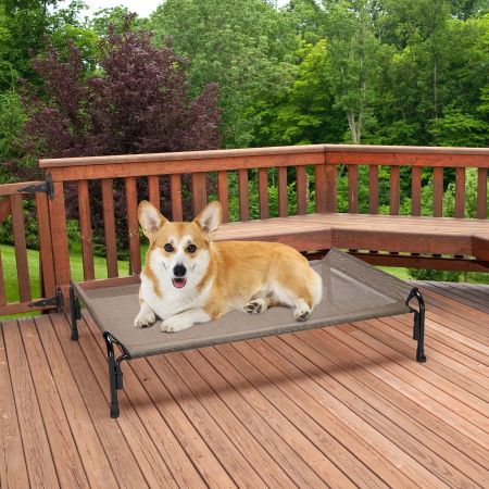 The veehoo elevated outdoor raised dog bed offers a comfortable and supportive resting place for your pets. Its elevated design ensures better air circulation, keeping your pets cool in summer and cozy in winter. The premium quality materials used are durable, easy to clean, and resistant to scratches, making it ideal for both indoor and outdoor use. The bed's snap-on design and non-slip feet ensure easy assembly and stability.