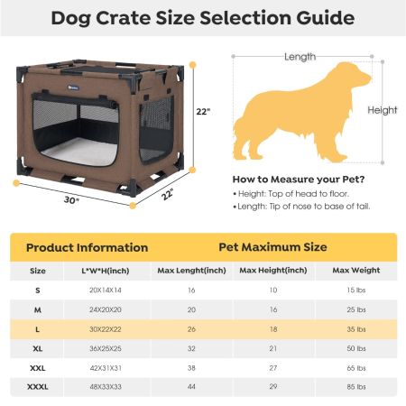 Size Dimensions Weight Suggested Pet Weight L 30''L×22''W×22''H 8.60lbs up to 35lbs XL 36''L×25''W×25''H 9.90lbs up to 50lbs Item Number CWB2429CP Weight 1.00lbs Species Cats, Dogs Product Feature Collapsible, Durable, Portable General Material Iron, Plastic Cover Material Faux Fur, Oxford Fabric Fill Material N/A Lifestage All Lifestages Assembly Required Yes Tools Included N/A - Video Tutorial