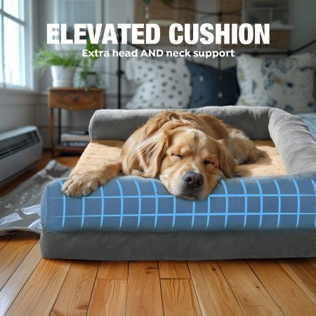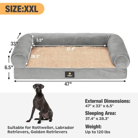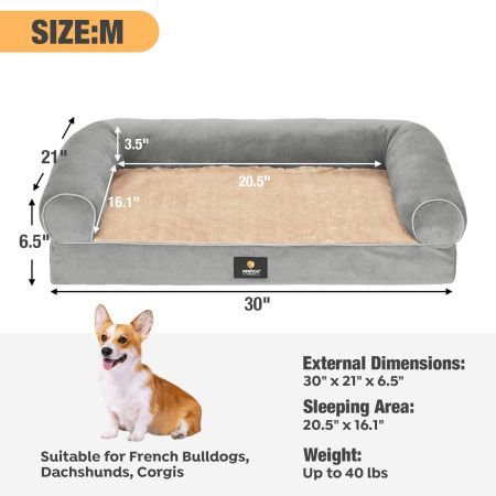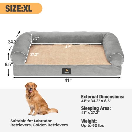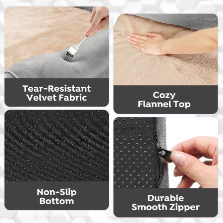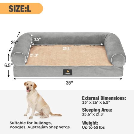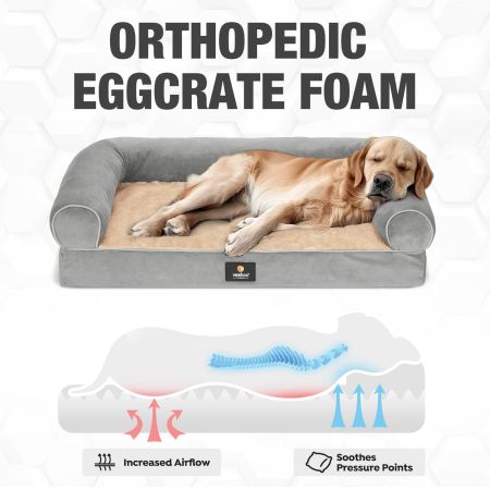 Experience ultimate comfort with the veehoo cozy orthopedic dog sofa bed. Orthopedic eggcrate foam alleviates pressure points for a better sleep. The removable, machine-washable cover keeps it fresh. With a sofa design and elevated cushion, it offers support and security. Durable velvet fabric and a cozy flannel top provide softness, while the non-slip bottom ensures safety. Easy-clean with a smooth zipper. Give your pets the rest they deserve with veehoo!