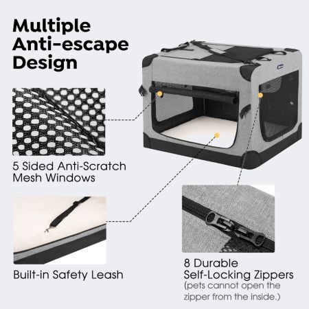 - Anti-escape Design: 5-sided anti-scratch mesh and 8 self-locking zippers for secure containment.
