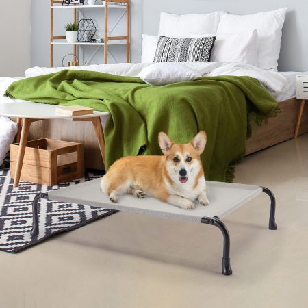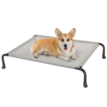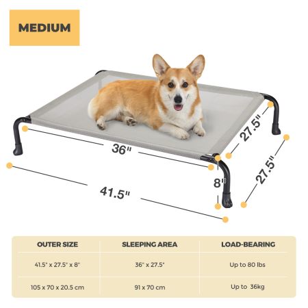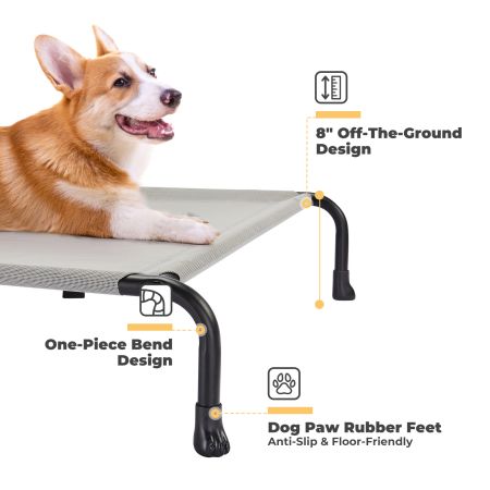 Customize your pet's resting experience with the veehoo classic bent tube elevated dog bed. Made with premium quality textilene mesh, this bed keeps your pets cool and comfortable. The 8-inch off-the-ground design allows for better airflow, while the one-piece bend design and thicker frame ensure stability and durability. The anti-slip rubber feet keep the bed in place, and the breathable, high-density, and scratch-resistant teslin fabric is easy to clean. This bed is an excellent choice for providing your pet with a comfortable and durable resting place.