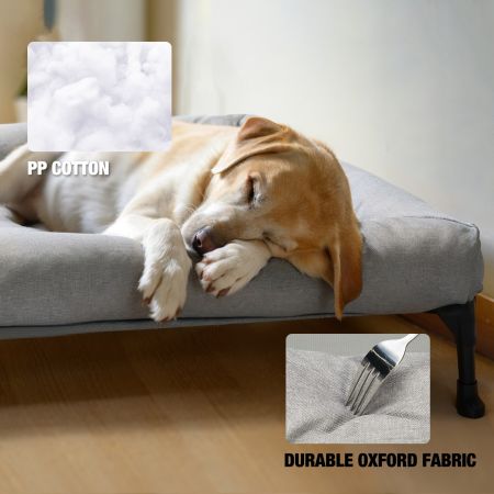 Size Dimensions Weight Suggested Pet Weight M 32"L×25"W×7"TH 5.70lbs up to 80lbs L 42"L×30"W×7"TH 7.20lbs up to 110lbs XL 49"L×33"W×9"TH 10.50lbs up to 150lbs Item Number CWC2331CP Weight 1.00lbs Species Dogs Bed Shape Rectangular Product Feature Anti-scratch, Breathable, Easy to Clean, No-Slip General Material Iron, Plastic Bed Type Elevated Beds Cover Material Oxford Fabric, Teslin Fabric Fill Material PP Cotton Lifestage All Lifestages Assembly Required Yes Tools Included N/A