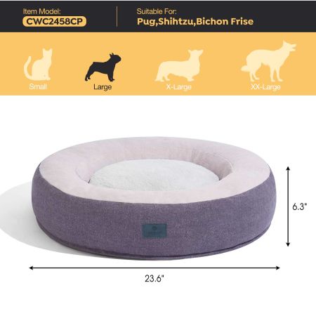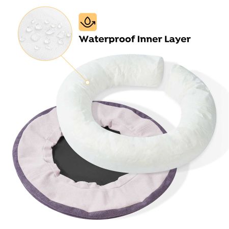 • Indulge your pets with the veehoo calming donut cat dog bed, designed to provide ultimate comfort and support. This cozy bed features ultra-soft brushed polyester fabric that creates a plush surface, perfect for your furry friends to curl up and relax. Filled with supportive chopped foam, it promotes a sense of security and calmness, helping pets feel at ease. The waterproof inner layer adds durability, and the non-slip bottom ensures the bed stays in place, offering a stable resting spot. Machine washable for easy maintenance, this calming bed is a must-have for your pet's comfort.