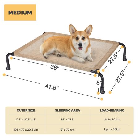 Customize your pet's resting experience with the veehoo classic bent tube elevated dog bed. Made with premium quality textilene mesh, this bed keeps your pets cool and comfortable. The 8-inch off-the-ground design allows for better airflow, while the one-piece bend design and thicker frame ensure stability and durability. The anti-slip rubber feet keep the bed in place, and the breathable, high-density, and scratch-resistant teslin fabric is easy to clean. This bed is an excellent choice for providing your pet with a comfortable and durable resting place.