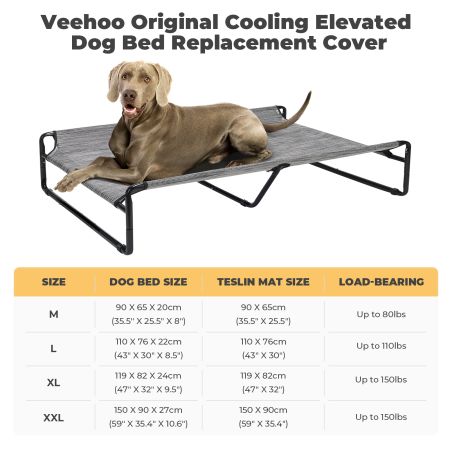 • The veehoo elevated dog bed replacement cover is well-designed to fit different sizes of dog beds and comes in various colors. Its cooling touch, breathability, scratch resistance, and easy-to-clean features make it an ideal choice for your pets’ resting needs.