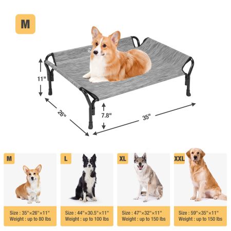 Size Dimensions Weight Suggested Pet Weight M 35''L×26''W×11''H 8.10lbs up to 80lbs L 40"L×30.5''W×11”H 10.10lbs up to 100lbs XL 50.5" L×33.5"W×12''H 12.50lbs up to 150lbs XXL 62.5"L×37"W×12"H 14.90lbs up to 150lbs Item Number CWC2307CP Compatible Product Model CWCD2307CP Weight 1.00lbs Species Dogs Bed Shape Rectangular Product Feature Anti-falling, Anti-scratch, Breathable, Chewproof Bed Type Sales General Material Iron, Plastic Cover Material Teslin Fabric Fill Material N/A Lifestage All Lifestages Assembly Required Yes Tools Included N/A - M/L/XLXXL