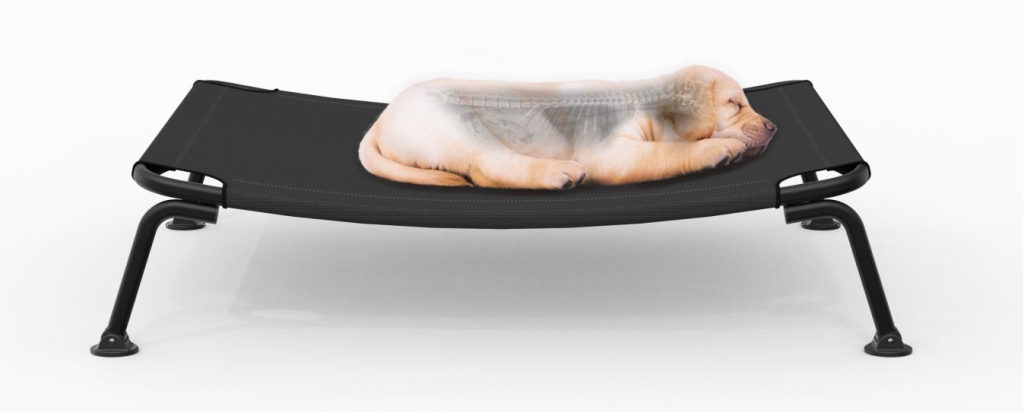 Pregnant mother dogs carry their puppies in a curved belly, keeping them warm and cozy. Puppies are born with an innate comfort and security associated with this shape. To enable healthy sleep like that in the womb during growth, our designers carefully observed and measured the curve of pregnant dogs’ abdomens, feeding the data into our elevated bed R&D.