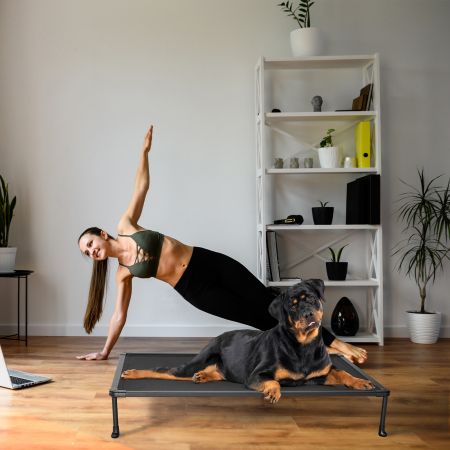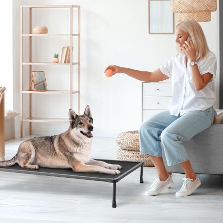 The veehoo chew-proof dog bed features a durable metal frame, textilene mesh fabric, and non-slip rubber feet, making it indestructible and perfect for dogs that love to chew. The raised design keeps your dog off cold floors, promoting comfort and health. The bed's tight mesh repels pet hair and dirt, making cleaning a breeze. Assembly is easy with included screws and tools, making it perfect for on-the-go quality sleep!