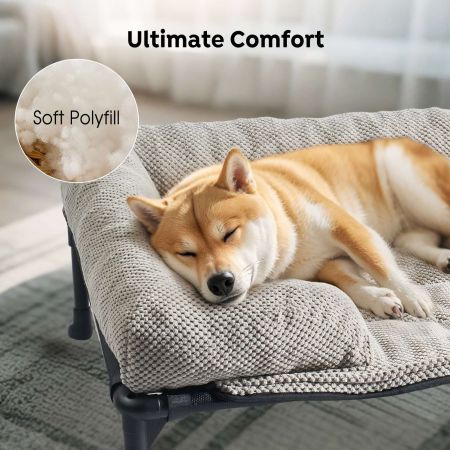 - The bed boasts robust legs for enhanced stability, ensuring it remains firm even with the most energetic pets.