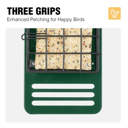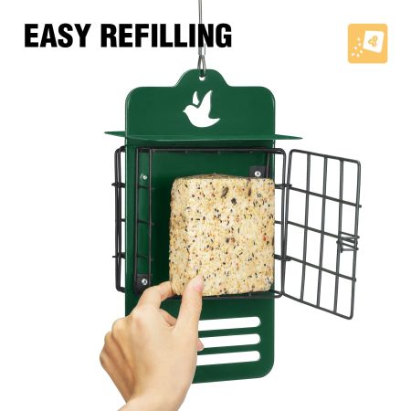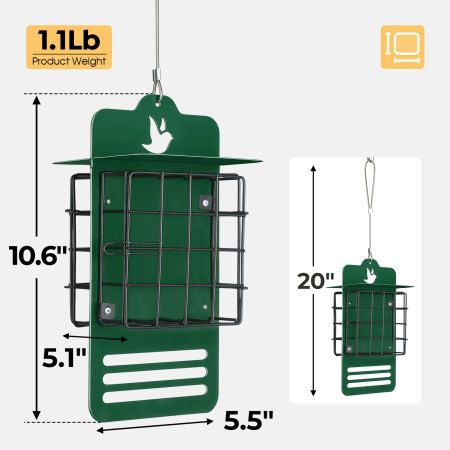 - Metal Drainage Chamber: Equipped with drainage holes to prevent water accumulation and keep the suet dry.