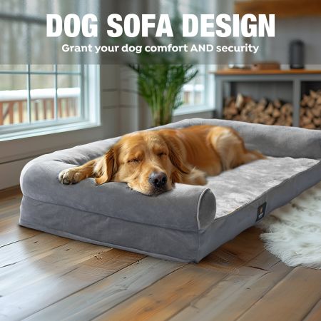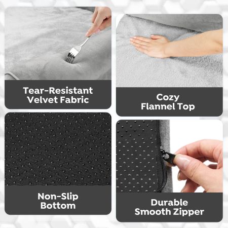 Experience ultimate comfort with the veehoo cozy orthopedic dog sofa bed. Orthopedic eggcrate foam alleviates pressure points for a better sleep. The removable, machine-washable cover keeps it fresh. With a sofa design and elevated cushion, it offers support and security. Durable velvet fabric and a cozy flannel top provide softness, while the non-slip bottom ensures safety. Easy-clean with a smooth zipper. Give your pets the rest they deserve with veehoo!