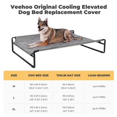 • The veehoo elevated dog bed replacement cover is well-designed to fit different sizes of dog beds and comes in various colors. Its cooling touch, breathability, scratch resistance, and easy-to-clean features make it an ideal choice for your pets’ resting needs.