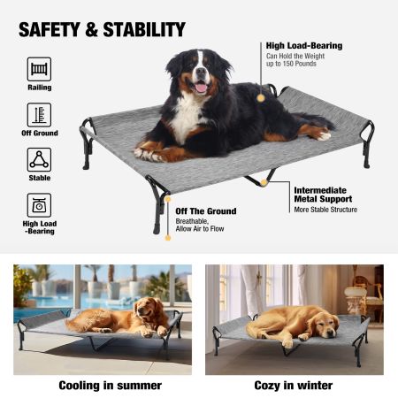 - Safety & stability: High load-bearing capacity (up to 150 lbs), elevated design keeps the bed surface dry, and non-slip rubber feet ensure stability.